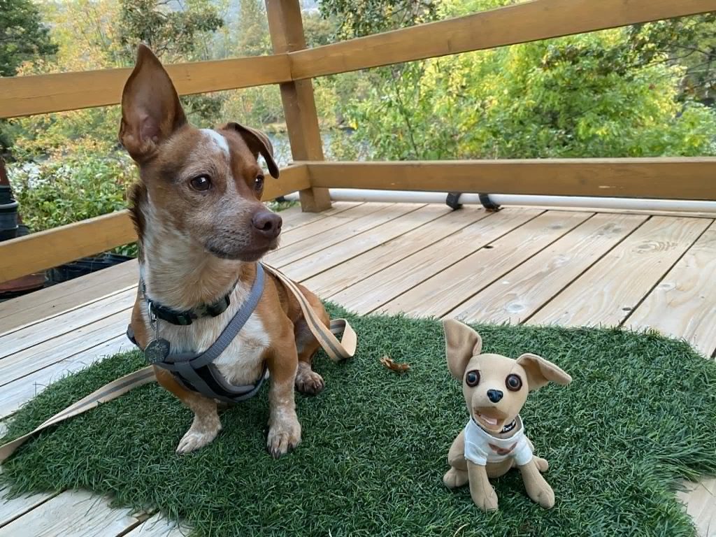 The first time Count Sydney met TuxnDog, he popped up out of the blue and came trotting onto our riverside deck in Shady Cove, Oregon. I happened to catch their very first meeting on video—and they hit it off immediately. Their natural chemistry sparked an idea: what if TuxnDog could give Sydney trick commands using speech buttons?