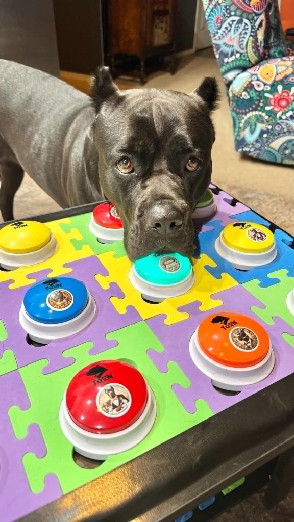 Most people train their dog to sit, stay, or fetch. But what if a dog could train another dog—using speech buttons? What if a Cane Corso could give a trick command to her neighbor on the deck, and that dog followed it with precision?